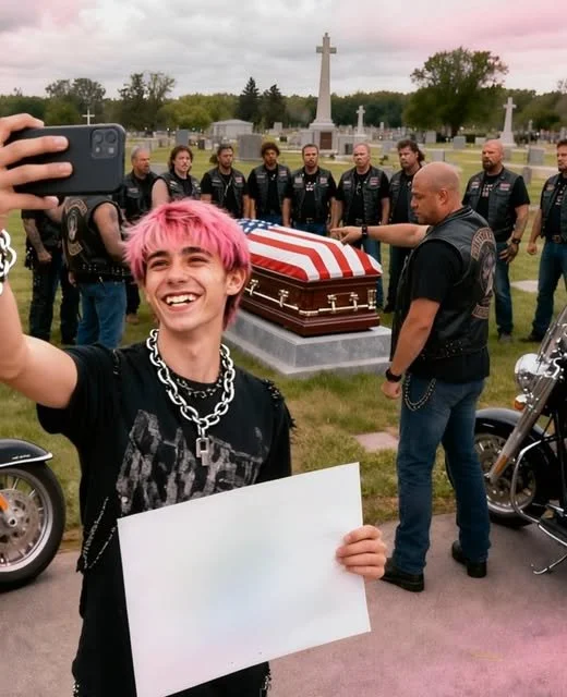 Luca Ricci, a 19-year-old TikToker with over 600,000 followers, stood discreetly outside the cemetery, his phone in hand, searching for the perfect angle for his video. Seventy-three members of the motorcycle club were present to pay tribute to Raymond “Doc” Patterson, a 68-year-old motorcyclist who had passed away from pancreatic cancer.